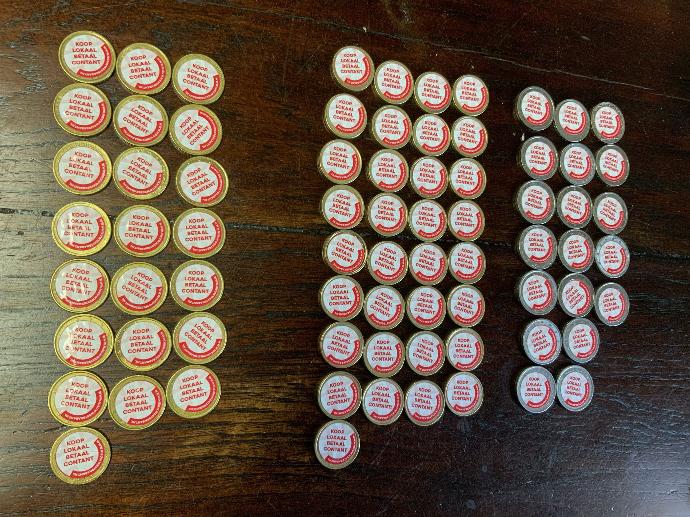 Stickers werden uitgedeeld, die geplakt kunnen worden op diverse euromunten, met de tekst: Koop lokaal, betaal lokaal. Achterliggende gedachte is het stimuleren van de lokale economie en zoveel mogelijk betalen met contant geld. Kortom, het was weer een geslaagde, interessante en waardevolle NWB-borrelavond vol initiatieven en gemeenschappelijke interesses. Daar word je blij van!