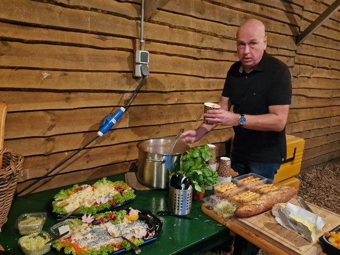 Er stond bij aankomst een voortreffelijke maaltijd gereed met een barbeucue en drankjes. Vlees, soep, stokbrood, salades, maar ook voor de vegetariërs was gezorgd.