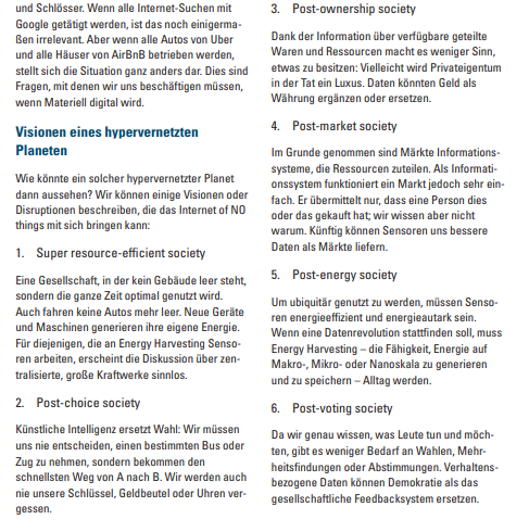 De Duitse overheid heeft twee interessante documenten gepubliceerd. Het ene beschrijft het concept van Smart Cities. Als je dat zorgvuldig leest, zie je op pagina 43 dat het ministerie expliciet een ‘post-vote society’ voorspelt: door artificiële intelligentie zal de overheid al weten wat mensen willen.
