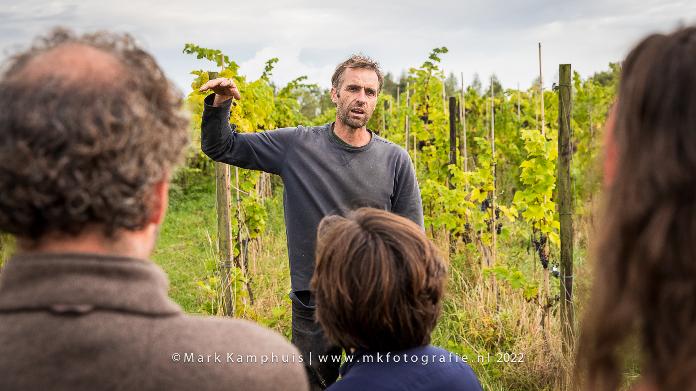 Enkele tientallen aspirant-leden van burgerinitiatief Nieuw West-Brabant zijn deze vrijdag 9 september afgekomen op de rondleiding en proeverij. Langeveld neemt ze mee door de biologisch-dynamische wijngaard. Het is keihard werken. Met aanvankelijk weinig resultaat. Het kostte Langeveld 14 jaar om 'break-even' te draaien, omdat een wijnstok traag groeit en veel soorten tijdens de experimentele fase het loodje legden en moesten worden vervangen door nieuwe rassen. Zijn partner Monique was de kostwinner.
