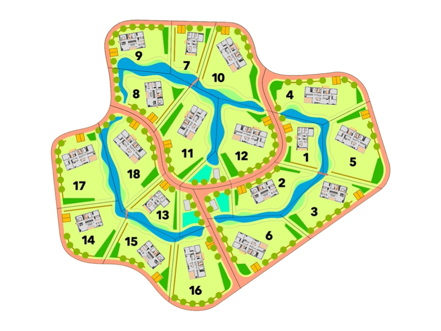 Hieronder een voorbeeld van organische gebiedsontwikkeling met betrekking tot de inrichting van de kavels.