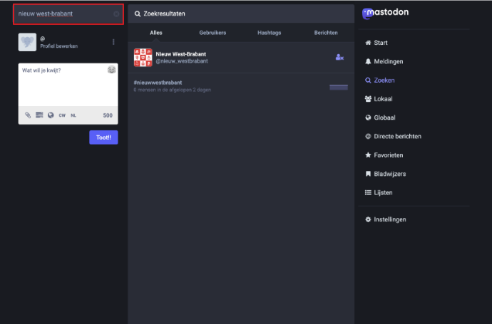 sociale controle. Nieuw West-Brabant heeft een eigen server, genaamd nwb.social.
