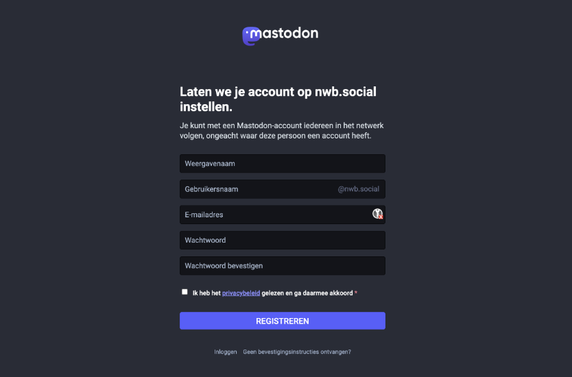 Jouw accountadres krijgt de vorm @gebruikersnaam@nwb.social